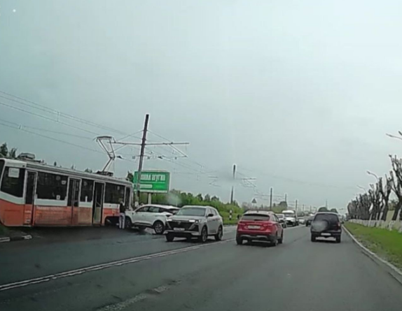 Сегодня утром в Железнодорожном районе Ульяновска произошло ДТП. Водитель кроссовера при повороте врезался в трамвай.