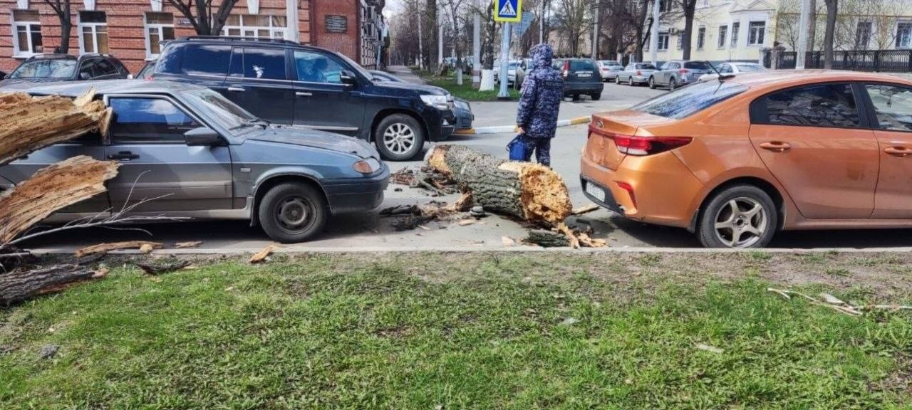 Упавшее дерево повредило две машины. О пострадавших не сообщается.