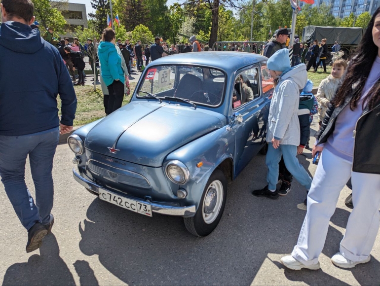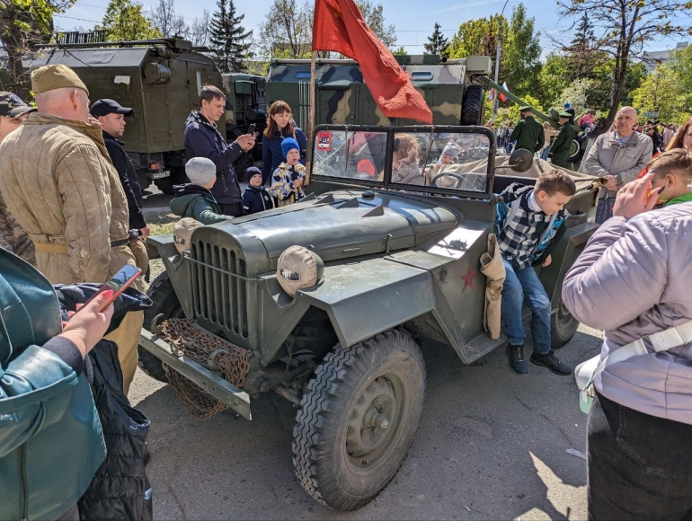 Сегодня, 9 мая, в День Победы на улице Минаева в Ульяновске проходит выставка ретро-автомобилей. Сфотографироваться с экспонатами может любой желающий.