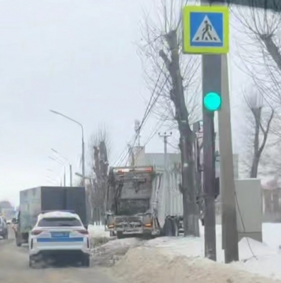 По сообщениям очевидцев, мусоровоз отлетел на обочину в результате столкновения с Газелью, которую буксировали в попутном направлении.