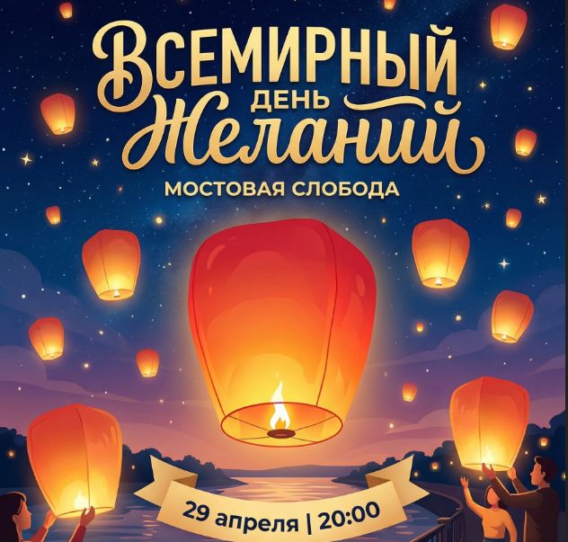 - У каждого из нас есть та самая, заветная мечта. Иногда, чтобы она начала сбываться, нужно просто искренне в нее поверить и дать ей красивый старт. 29 апреля отмечается Всемирный день желаний. В честь этого доброго праздника мы приглашаем жителей и гостей города стать частью невероятно красивого события, которое пройдет на Набережной Мостовой Слободы. В этот вечер мы вместе запустим в небо светящиеся фонарики. Отправляя свой огонек к звездам, каждый сможет загадать самое сокровенное желание, - говорит Сидоров.
