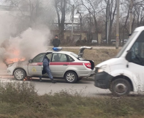 Сегодня, 4 декабря, в Засвияжском районе Ульяновска загорелся автомобиль «Лада Гранта» - машина Управления Росгвардии. Пожар произошел на проезжей части улицы Октябрьской.