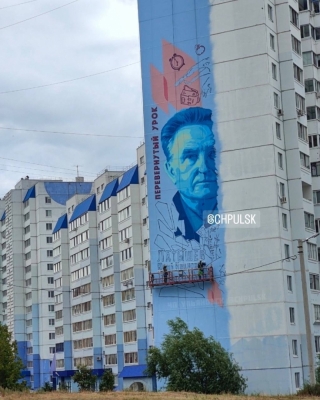 Мурал на фасаде многоэтажного дома по улице Панорамная, 75 почти готов. Он посвящён памяти ульяновца — народного учителя Российской Федерации Юрия Латышева.