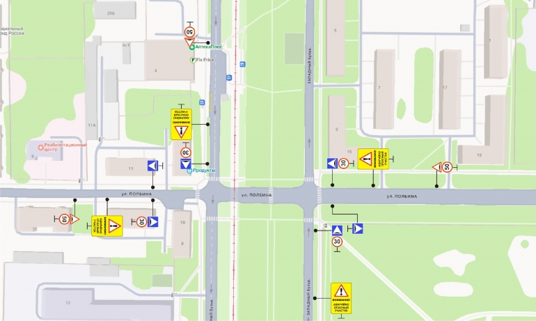 Там сотрудники учреждения установили искусственные дорожные неровности (лежачие полицейские) и знаки 1.17, 5.20 «Искусственная неровность», 3.24 «Ограничение скорости» 50, 30 км/ч, а так же знак, предупреждающий водителей об опасном участке.