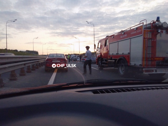 В субботней крупной аварии на Президентском мосту пострадали люди, сообщает ГУ МЧС по Ульяновской области. Столкнулись три автомобиля - FАW Vita, Opel Astra и Mitsubishi Outlander. Последняя иномарка перевернулась на крышу.