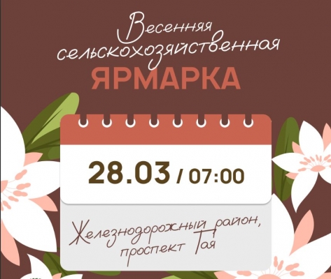 Региональный минсельхоз сообщает, что в ближайшую субботу, 28 марта, в Железнодорожном районе состоится очередная весенняя продовольственная ярмарка. Торговля развернется на проспекте Гая.