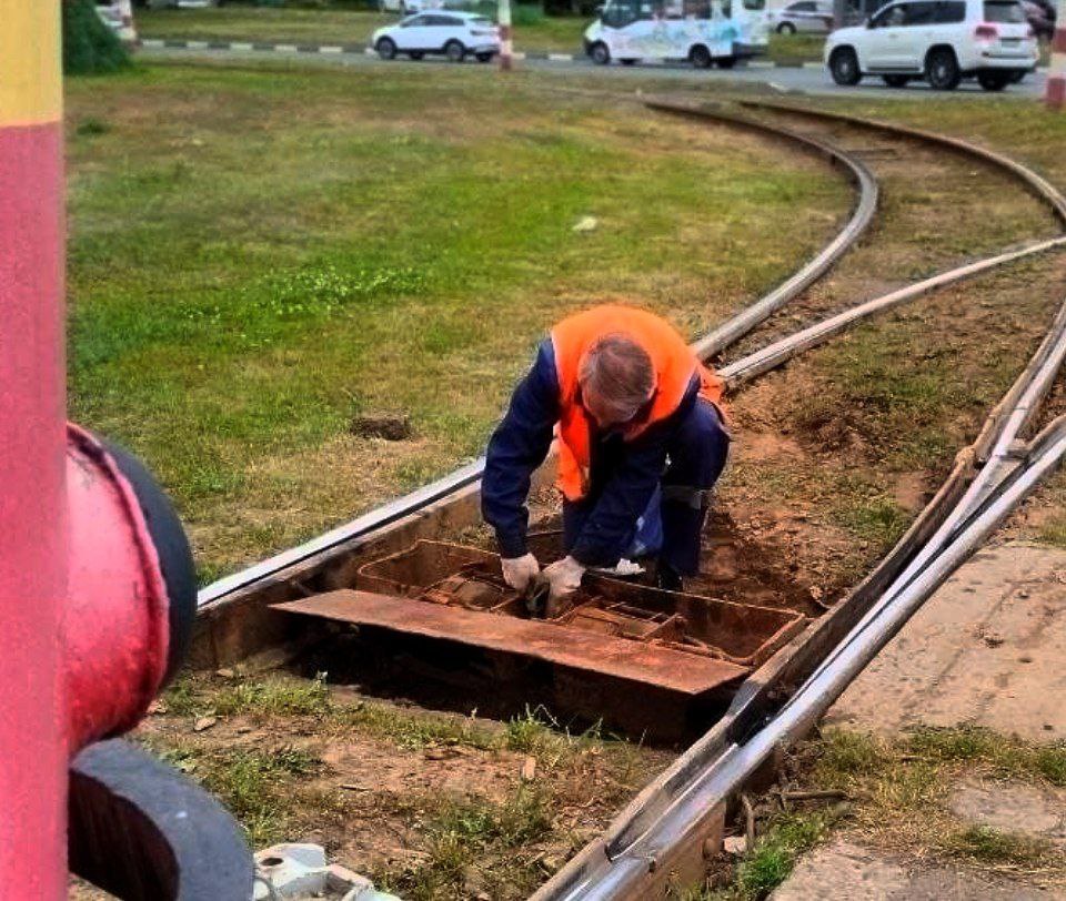 Сегодня, 22 июля, специалисты предприятия провели ремонт автоматического стрелочного перевода на Пушкарёвском кольце.
