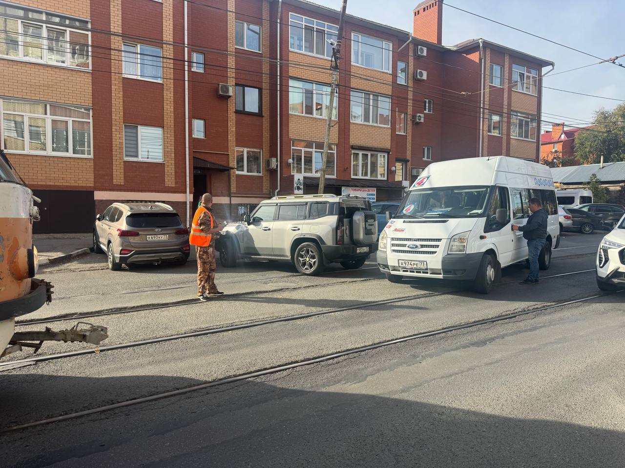 Авария случилась на трамвайных рельсах, поэтому движение электротранспорта сейчас парализовано.