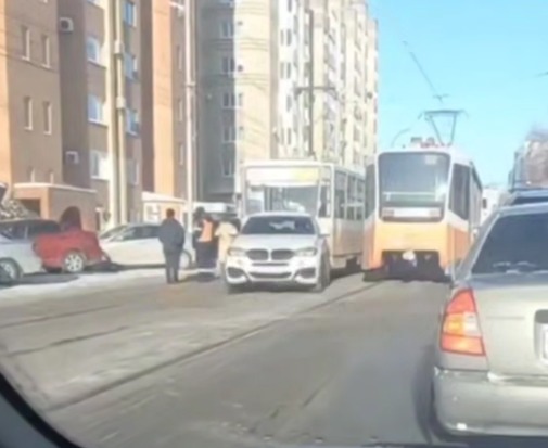 По сообщениям очевидцев, водитель иномарки не предоставил преимущество водителю трамвая и спровоцировал ДТП. На месте работают сотрудники Госавтоинспекции. Информация о пострадавших уточняется.