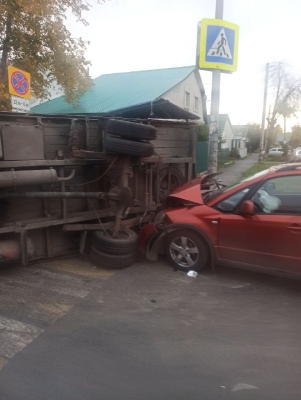 На кадрах, опубликованных с места аварии, видно, что на пешеходном переходе произошло столкновение грузовой ГАЗели и легкового автомобиля. В результате ДТП грузовой автомобиль перевернулся.