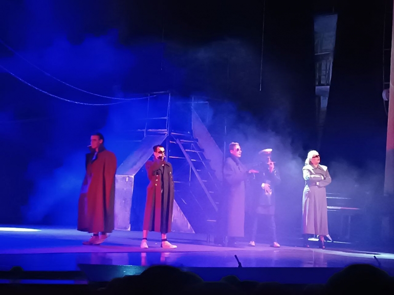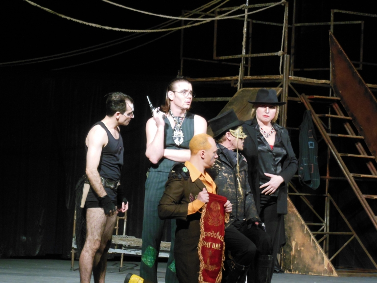 Эксцентричный спектакль начался с десятиминутной задержкой. Главные герои появились на ульяновской сцене эффектно — Мастер вышел в домашней одежде с шарфом на шее, Маргарита — в прозрачной черной комбинации.