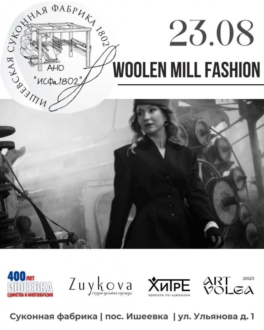 Сегодня на Ишеевской суконной фабрике (Ишеевка, ул. Ульянова, 1) пройдет модное мероприятие WOOLEN MILL FASHION. Начало – в 14:00.