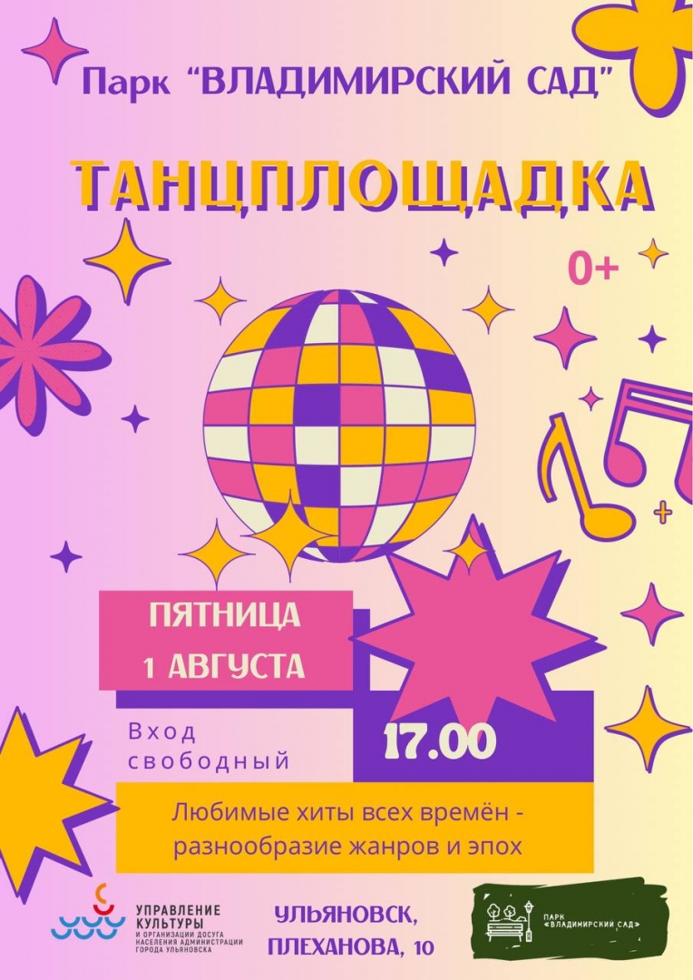 Завтра, 1 августа, в парке «Владимирский сад», который находится на улице Плеханова, 10 в Ульяновске, развернется танцплощадка.