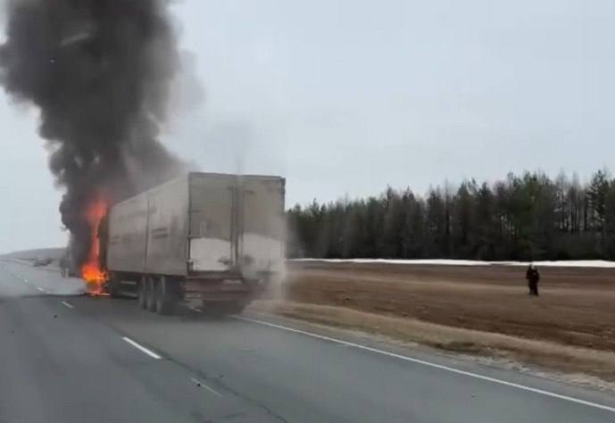 Отмечается, что огонь уничтожил кабину и повредил прицеп с яйцами.