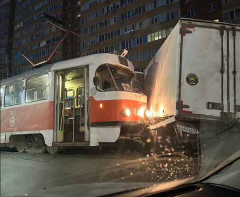 Сегодня утром, 16 ноября, в Железнодорожном районе Ульяновска грузовик врезался в трамвай №90, сообщают очевидцы в социальных сетях.