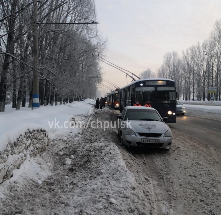 Вчера похожая ситуация произошла в Заволжье: на проспекте Созидателей из-за припаркованной «Приоры» остановились троллейбусы.