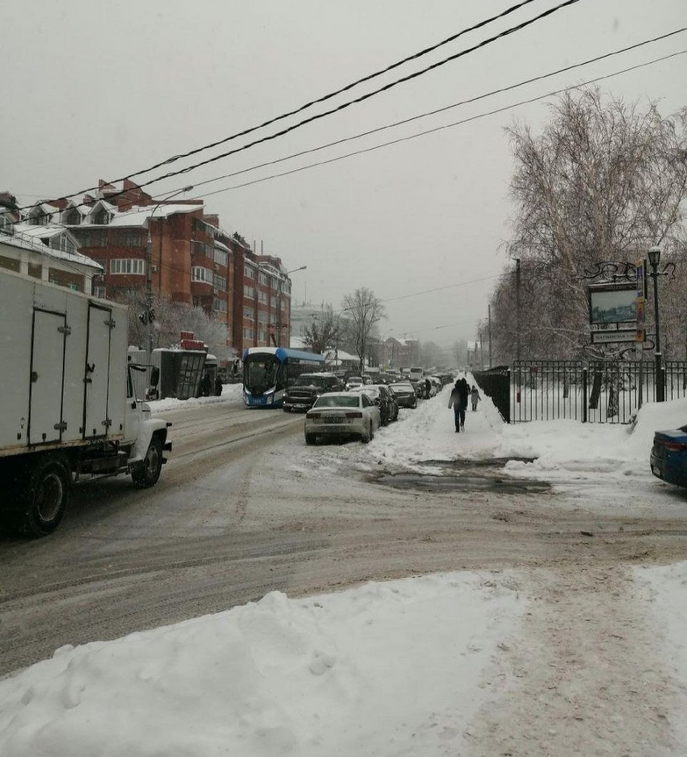 Сегодня днём, 4 февраля, на улице Радищева в Ульяновске встали трамваи. Движение заблокировал очередной «мастер парковки». Водитель так поставил свою машину, что вагон не смог пройти.