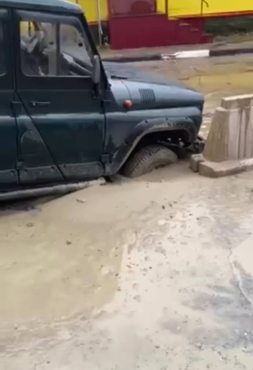В ноябре прошлого года на этом же участке автомобиль УАЗ провалился в яму, оставленную после работ коммунальных служб.