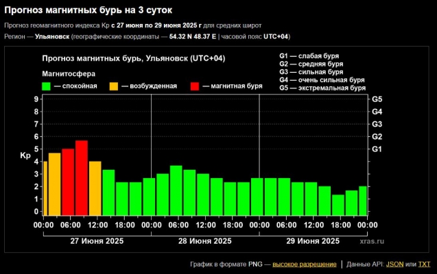 Магнитная буря уровня G1 достигла своего пика под утро и в данный момент идет на спад. Ожидается, что до обеда магнитное поле планеты придет в норму.