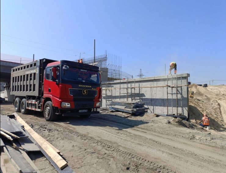 - Полностью готовы шкафные стенки обеих опор. В начале недели предстоит завершить бетонирование подферменных площадок, а до 10 августа – начать установку на них 10 мостовых балок. Сейчас идёт засыпка шкафных стенок с послойным уплотнением.