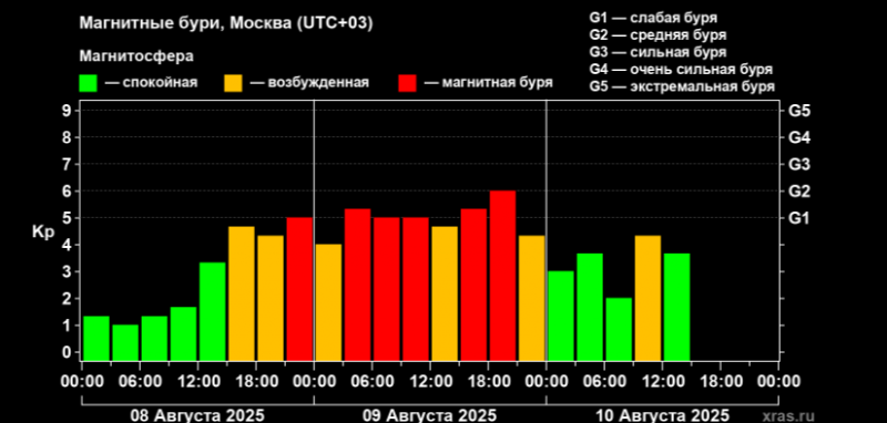 На пике буря достигла уровня G2.0, что стало самым сильным значением с июня.
