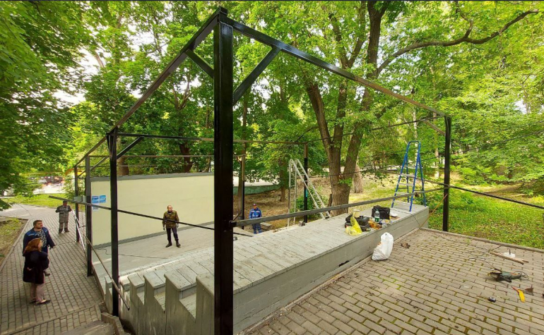 Как пояснили в мэрии, это позволит сделать киносеансы, которые здесь проходят, более комфортными. Навес защитит посетителей от дождя.