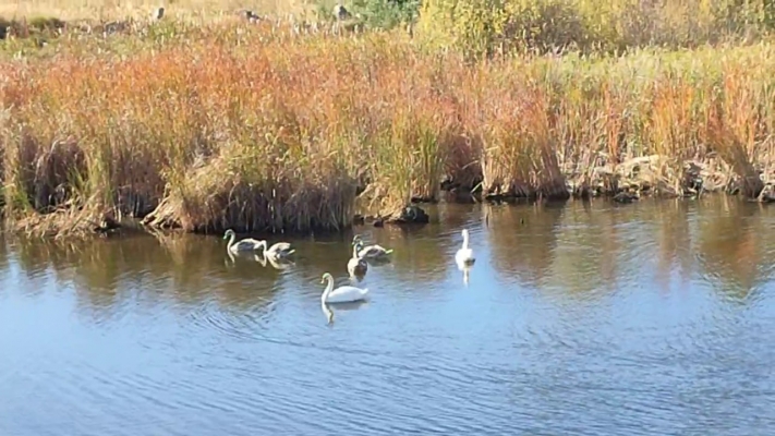 Сегодня пришло радостное известие — лебедь нашелся. Еще утром на озере было трое детенышей, а после обеда их стало четверо. Каким-то образом он сам добрался до водоема к родным.