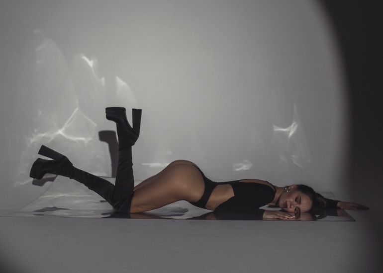 Наша землячка Негода подчеркнула аппетитные формы черным боди, а стройные ноги - высокими сапогами на огромных каблуках. На фото девушка выгнулась, как настоящая пантера перед прыжком.