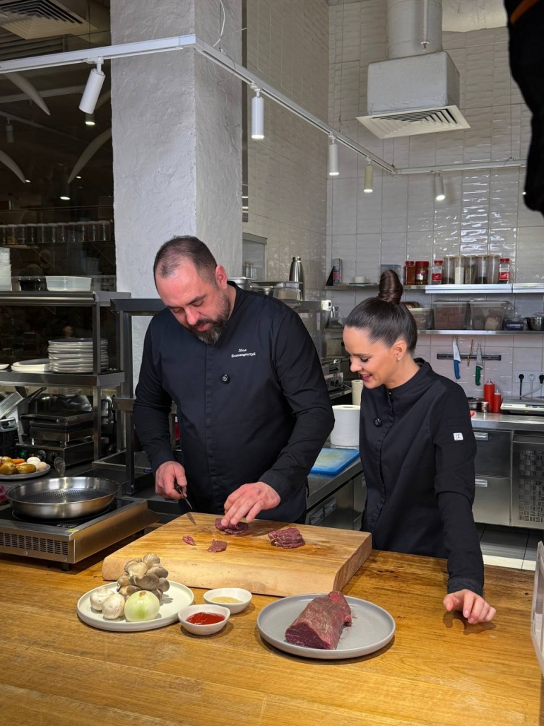 Настя Негода поделилась фото из закулисья кулинарного шоу, в котором она приняли участие вместе с бренд-шефом столичного ресторана «Sapiens» и лаунж-бара «MAGMA»Ильей Благовещенским.