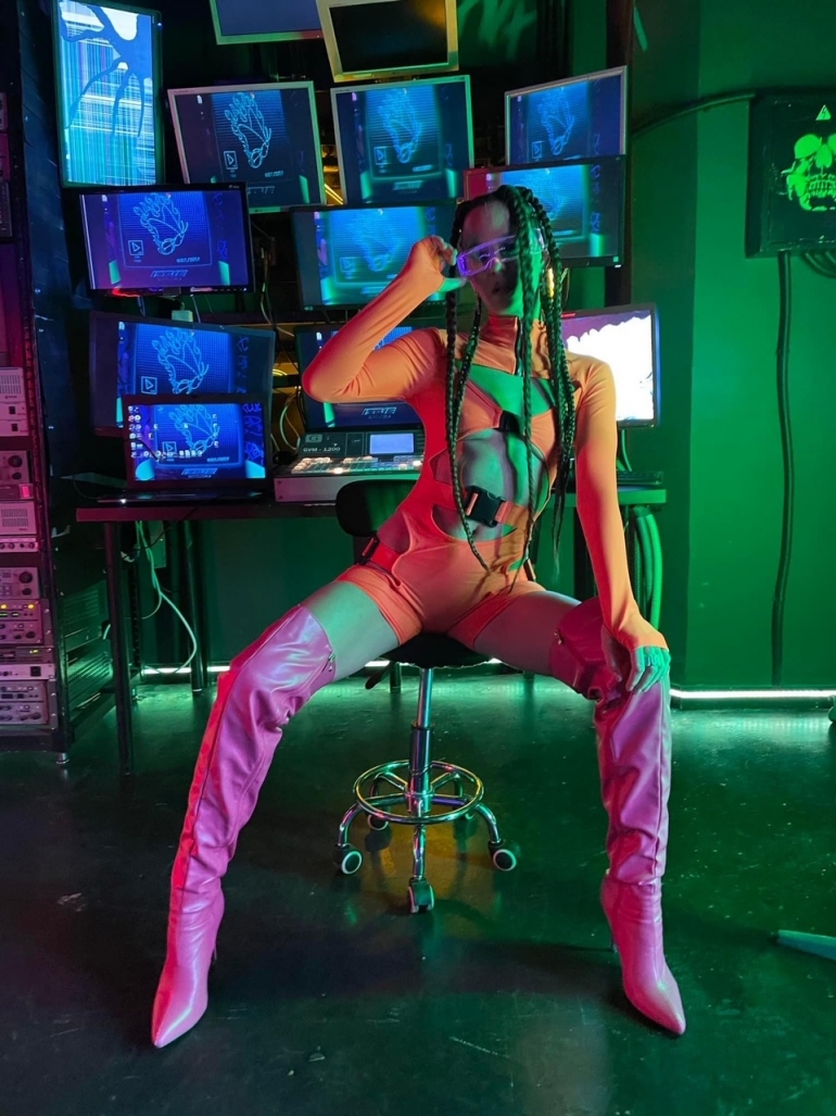 В новом клипе певица предстает в откровенных футуристичных нарядах.