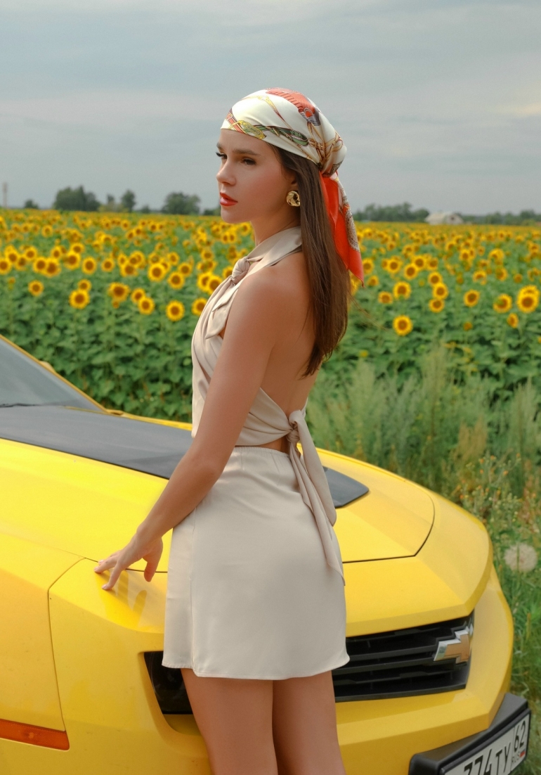 Певица Настя Негода поделилась фотографиями со съемок клипа на известную песню «Хуторянка», которую раньше исполняла София Ротару. Для антуража выбрали живописные места на Алтае. Настю уложили в стог сена, нашли для нее раритет – красный таксофон, подобрали яркое подсолнуховое поле и желтую гоночную машину.