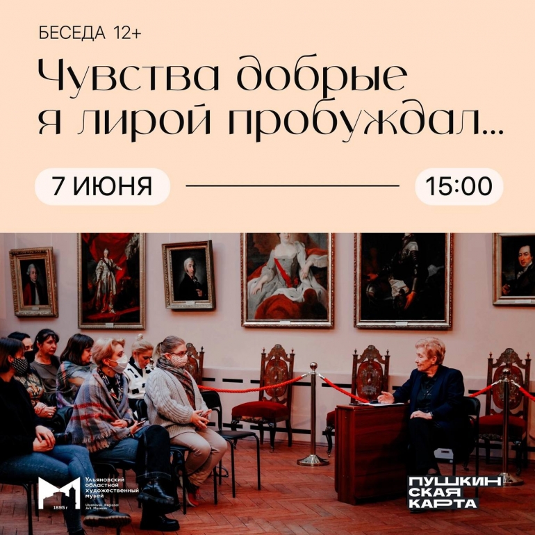 7 июня в 15:00 в выставочном зале Ульяновского областного художественного музея состоится беседа «Чувства добрые я лирой пробуждал...», которая посвящена творчеству великого поэта А.С.Пушкина.