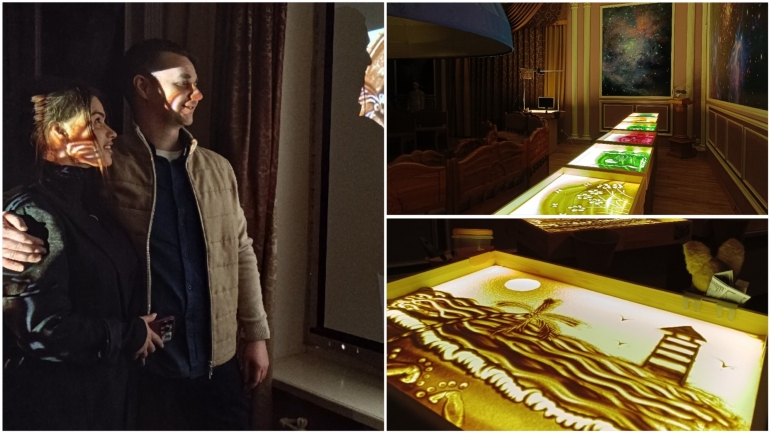 После звездного путешествия вас ждет погружение в мир песочного искусства. Насладитесь завораживающей песочной анимацией и попробуйте свои силы в волшебном песочном рисовании от студии «Фенек».