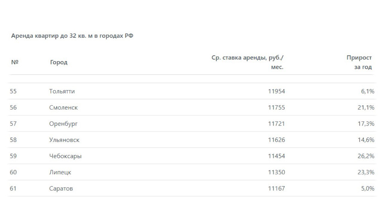 В Ульяновске средняя студия или небольшая «однушка» стоит сейчас 11 626 руб./мес. (+14,6%),