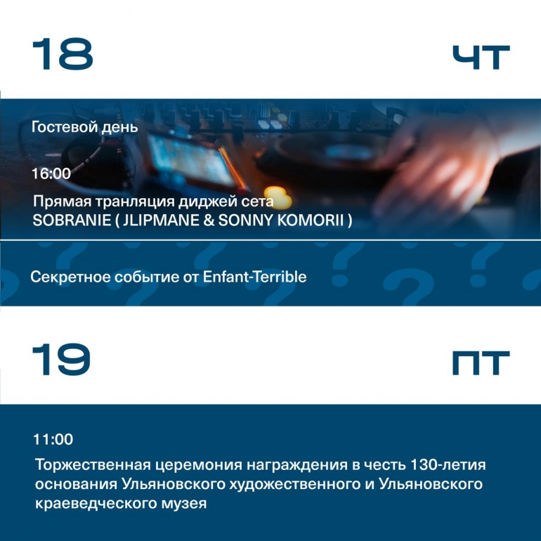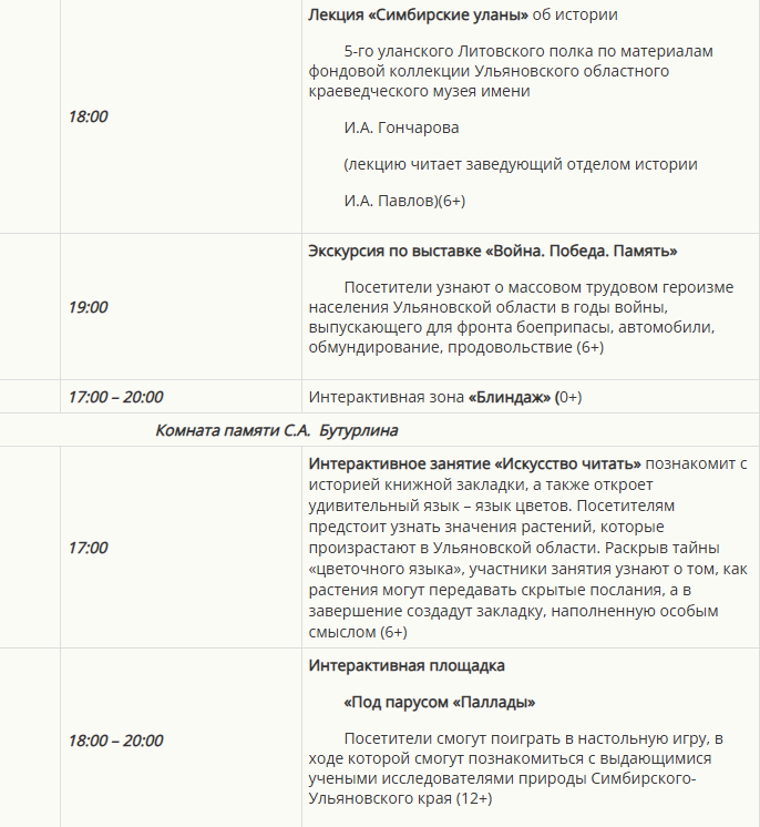 В 16:40 там же — Пленарное заседание Всероссийской книжной ярмарки Союза писателей в Ульяновске «Герои на все времена».
