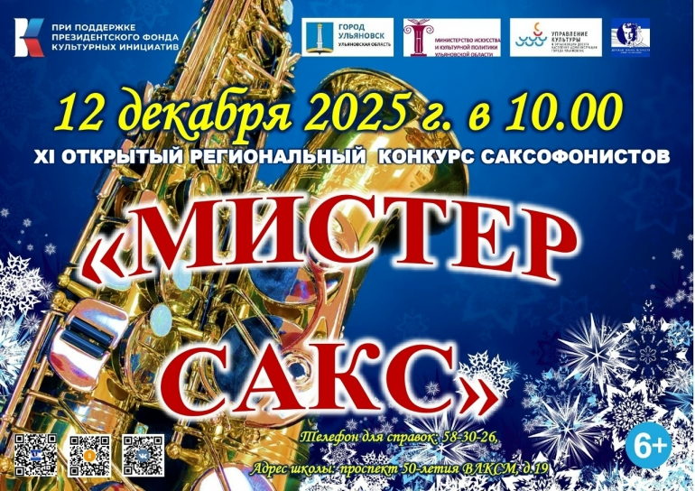 12 декабря в 10:00 Детская школа искусств имени Варламова (проспект 50-летия ВЛКСМ, д. 19) примет саксофонистов на конкурс.