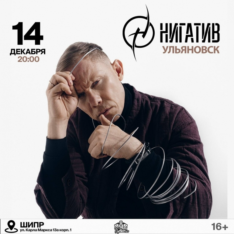 14 декабря в 20:00 в Шипре (ул. Карла Маркса, 13а, корп. 1) выступает Нигатив — музыкант, актер и писатель, в прошлом участник группы «Триада».