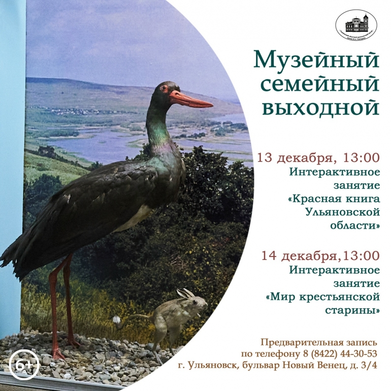 В Ульяновском областном краеведческом музее имени И. А. Гончарова (бульвар Новый Венец, д. 3/4) 13 декабря в 13:00 пройдет интерактивное занятие «Красная книга Ульяновской области». Во время занятия участники познакомятся с красной книгой региона, узнают о причинах её создания и об изменениях, которые происходят в новых изданиях. Особое внимание уделяется причинам редкости различных групп животных и растений в Ульяновской области.