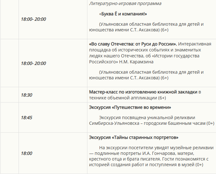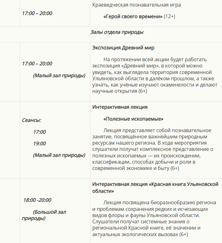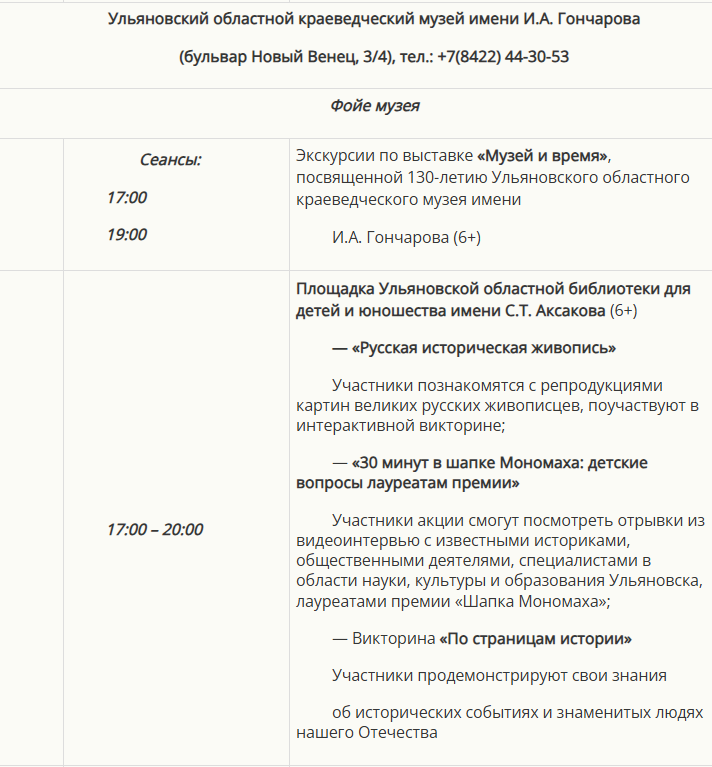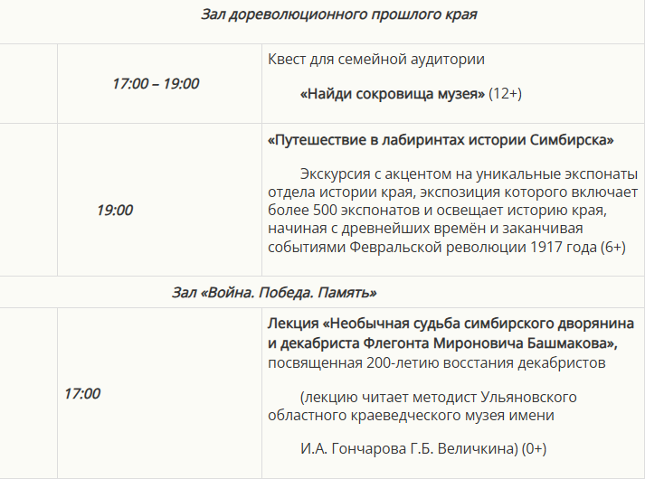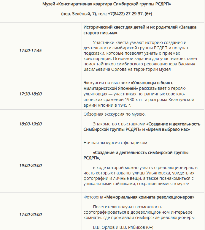 С 16:00 до 20:00 пройдут выставки, экскурсии, мастер-классы и музейные занятия, лекции, встречи-беседы.