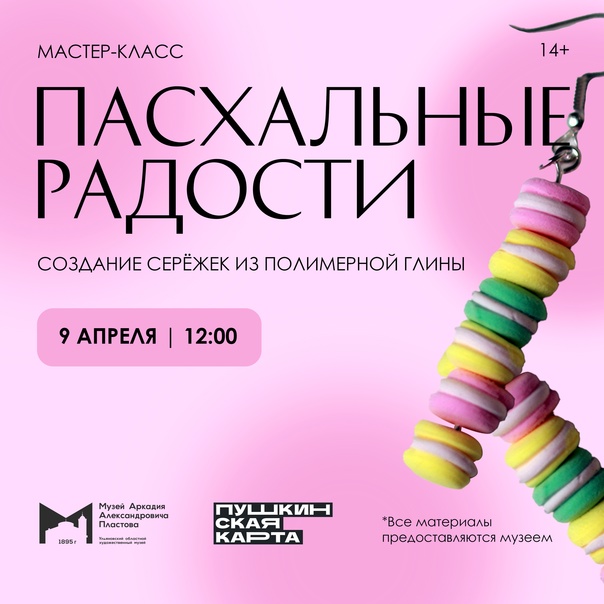 Все мы привыкли, что перед Пасхой заполоняют полки магазинов шоколадные зайцы, кролики и, конечно же, яйца. Организаторы решили, что можно совместить любовь к сладостям с полезным времяпрепровождением – лепкой из воздушной полимерной глины. Вы создадите две пары серёжек в виде популярных сладостей, которые внесут весенние краски в вашу жизнь.