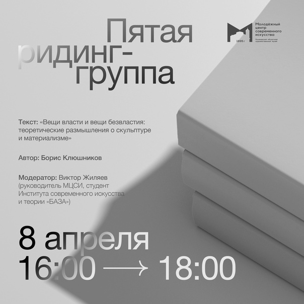Ридинг-группа сосредоточиться на статье Бориса Клюшникова, преподавателя и организатора программ по теории и истории искусства института «База», и будет приурочена к выставке «Скульптура. Философия трехмерности». Вы узнаете как скульптура раскрывается в трехмерном пространстве, и как сама скульптура является проявлением трехмерности.