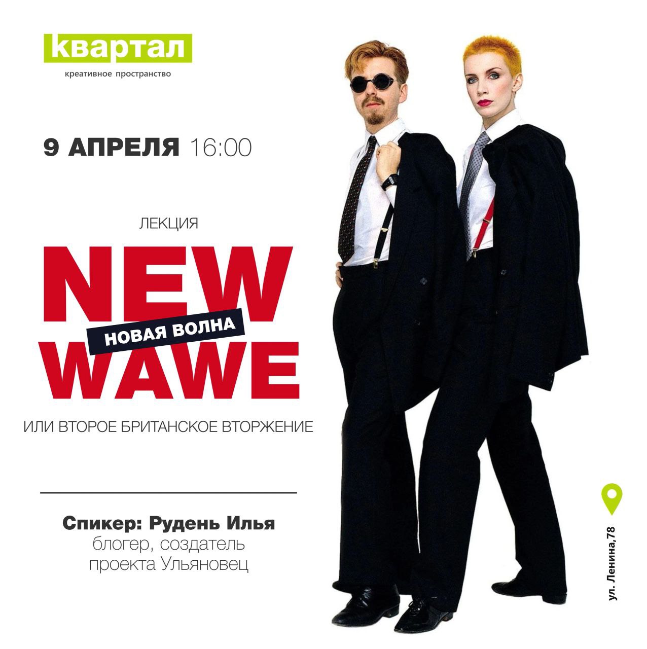 Спикер: Илья Рудень - блогер, создатель проекта «Ульяновец». На лекции вы узнаете о музыкальном феномене новой волны; познакомитесь с самыми яркими представителями этого направления; послушаете музыку 80-х; погрузитесь в философию, стиль жизни и другие культурные аспекты того времени.