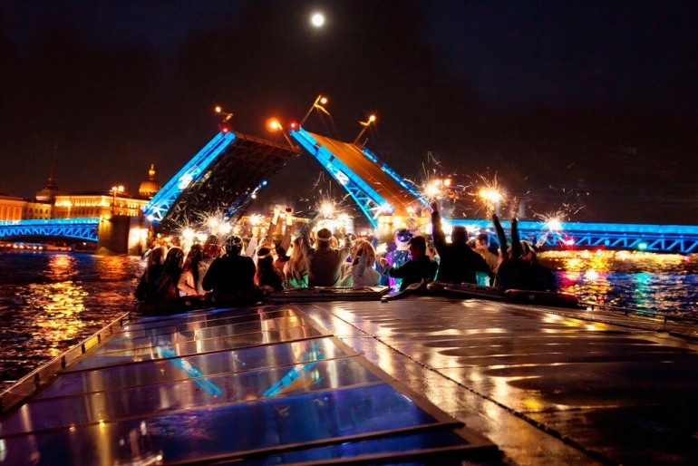Чтобы посмотреть ночной Петербург со всех ракурсов, нужно совместить наземный и водный транспорт. Так мы и поступим на автобусно-теплоходной экскурсии. Вечер начнется с объезда города на автобусе: посмотрим на подсветку центра и на его ночных жителей. Потом пересядем на теплоход, с него полюбуемся ночными набережными и разводными мостами. Как только увидим последние разведенные створки, вернемся на сушу и будем гулять до рассвета. Насыщенно, правда? Не стоит удивляться: в сезон разводных мостов жизнь Петербурга бьет ключом круглые сутки.