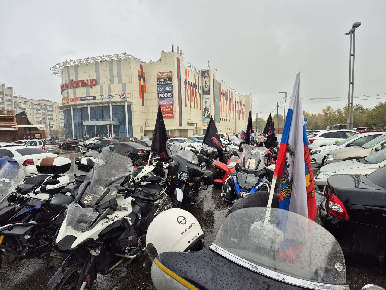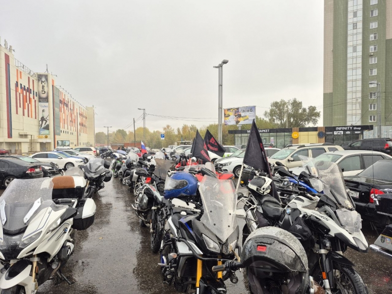 Мотоклуб «Ночные волки» Ульяновска сегодня закрывает сезон. Несмотря на плохую погоду, байкеры собрались у ТЦ «Пушкаревское кольцо».