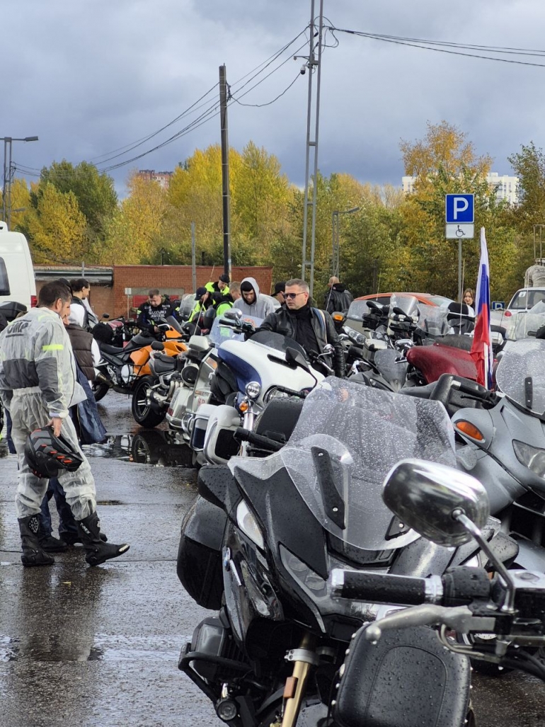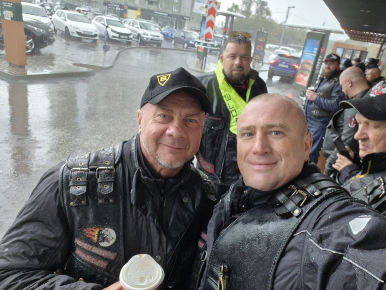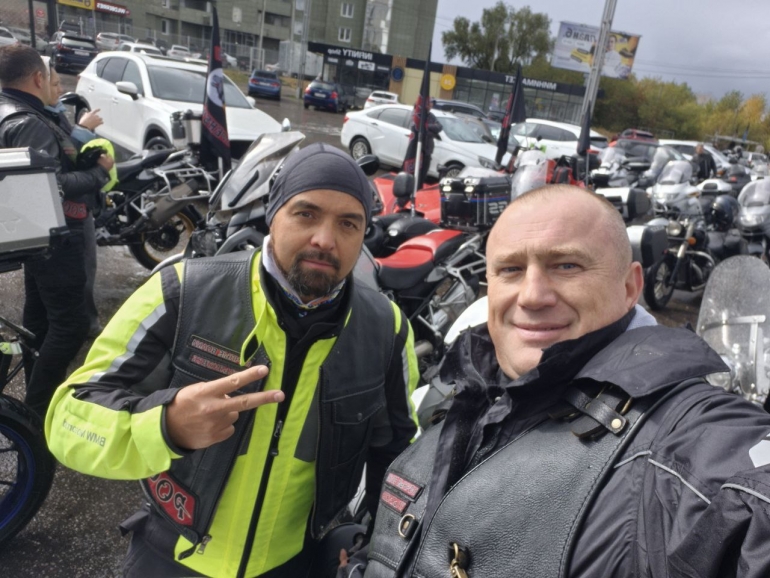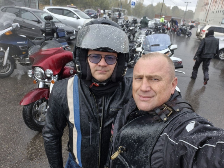 Вместе с бизнесменом Сергеем Глебовым – он не участник «Ночных волков», но тоже любитель мототемы.