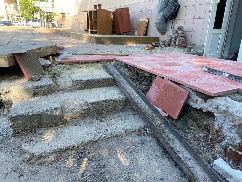Как рассказал владелец летнего кафе, перед укладкой настила пришлось серьезно поработать — территория в этом месте, несмотря на то, что находится в самом центре города, была в заброшенном состоянии — отваливалась плитка, асфальт крошился, сквозь него прорастала трава. Так что рабочие перед установкой привели покрытие в порядок: выкосили траву, выровняли и обновили дорожки, делают пандус для инвалидов. К слову, это не первый раз, когда предприниматель берет на себя социальные обязательства — ежегодно по просьбе мэрии он бесплатно кормит ветеранов в честь Дня Победы.
