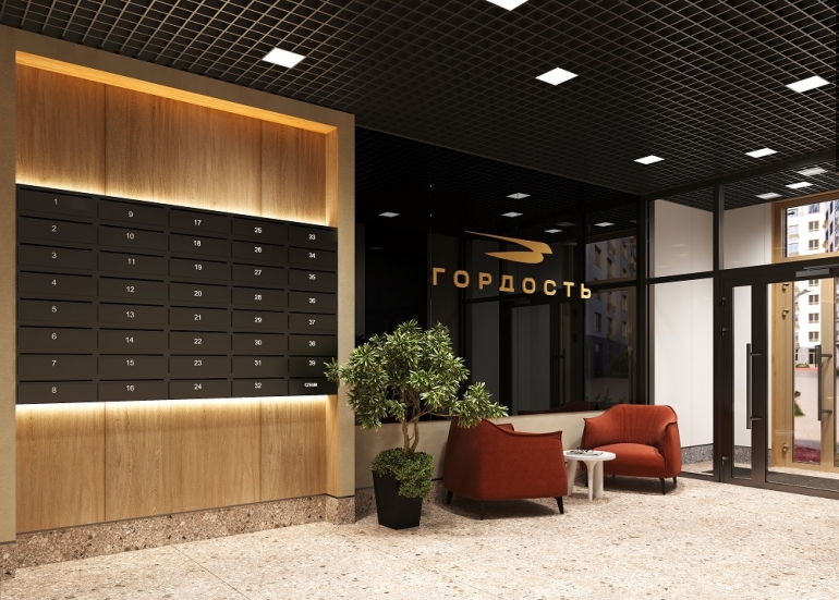 В «Гордости» спроектированы сквозные подъезды: попасть внутрь легко как с улицы, так и со двора. Домофоны, расположенные в теплых тамбурах, позволят не замерзнуть зимой.
