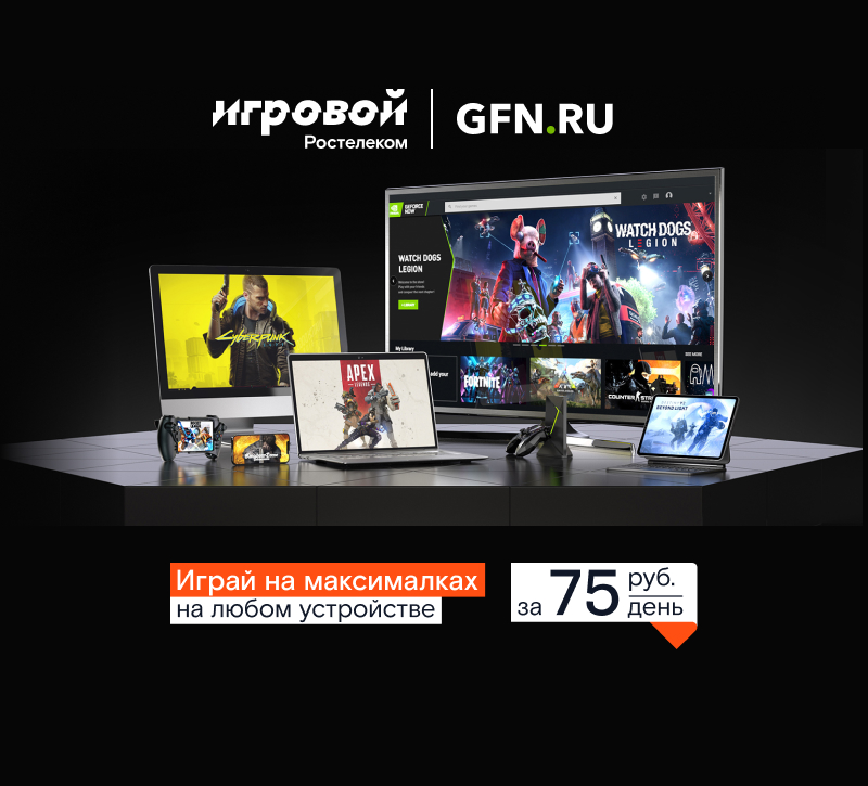 Игровой сервис GFN.RU — эксклюзивный партнер мирового лидера рынка графических процессоров и визуальных вычислений NVIDIA по развитию игрового сервиса GeForce NOW в России и странах СНГ. «Ростелеком» начал сотрудничество с GFN.RU в октябре 2019 года, что позволило геймерам запускать самые требовательные к мощности и быстродействию современные игры практически с любого персонального компьютера, сохраняя при этом преимущества графики GeForce новейшего поколения. Подписчикам доступны такие облачные игры как Genshin Impact, Fortnite, Destiny 2, «Мир Танков» и сотни других.