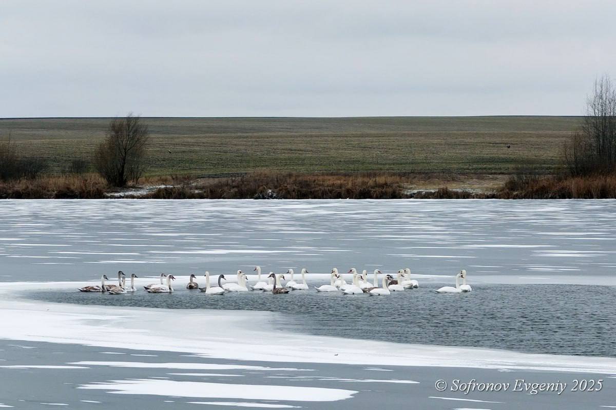 Всё началось с одиннадцати лебедей, спокойно плававших среди первого льда. Но вскоре картина изменилась: к ним присоединились ещё 23 сородича. Итог – 34 величественные птицы в одной акватории, создающие впечатление настоящего птичьего «аэродрома» перед вылетом.