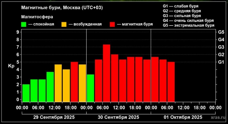 Стоит отметить, что вчера магнитная буря достигла отметки G3 (сильная) по шкале из пяти уровней, где G5 - «экстремальная буря», а G1 - «слабая».